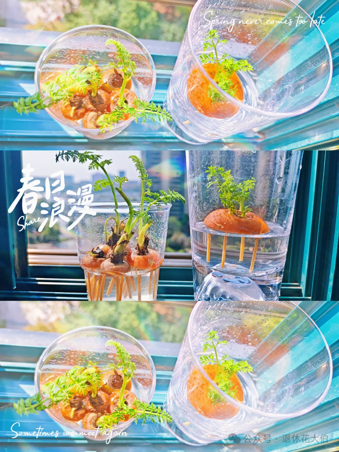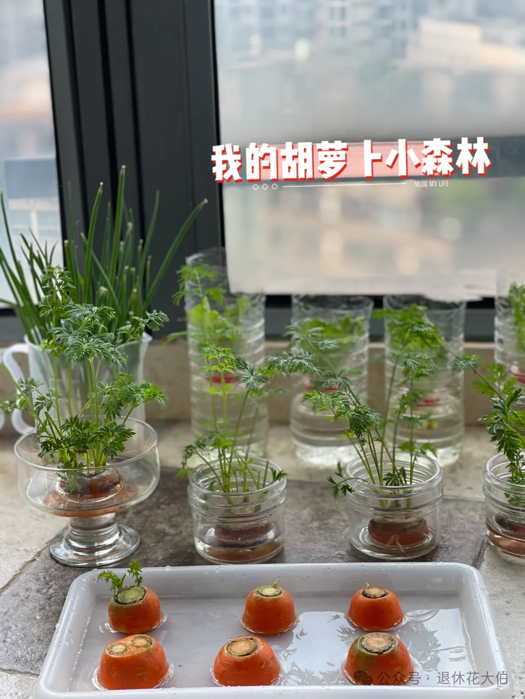 重庆一20岁的大小伙子,每次吃胡萝卜的时候都会留一截,扔到各种瓶瓶罐罐里水培。