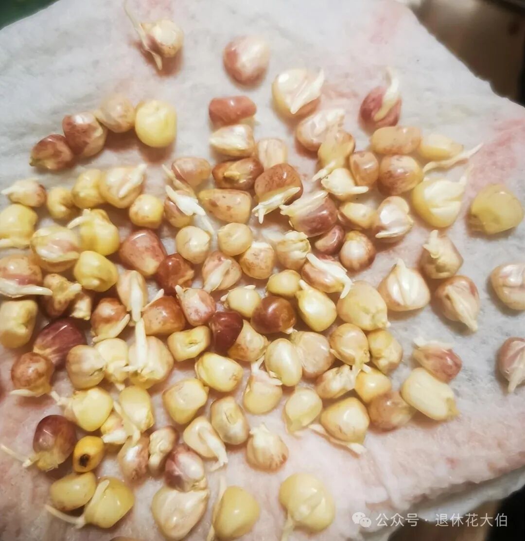 为了让玉米种子尽快的发芽生根长出新的叶子,在种植之前,我们提前使用40度的温水浸泡一晚上,然后把它撒在土壤的表面,再覆盖上大约1~2cm厚度的营养土,用提前晾晒两天以上的自来水浇灌,一次性浇湿透,这样大概不到一周的时间就会长出玉米苗。