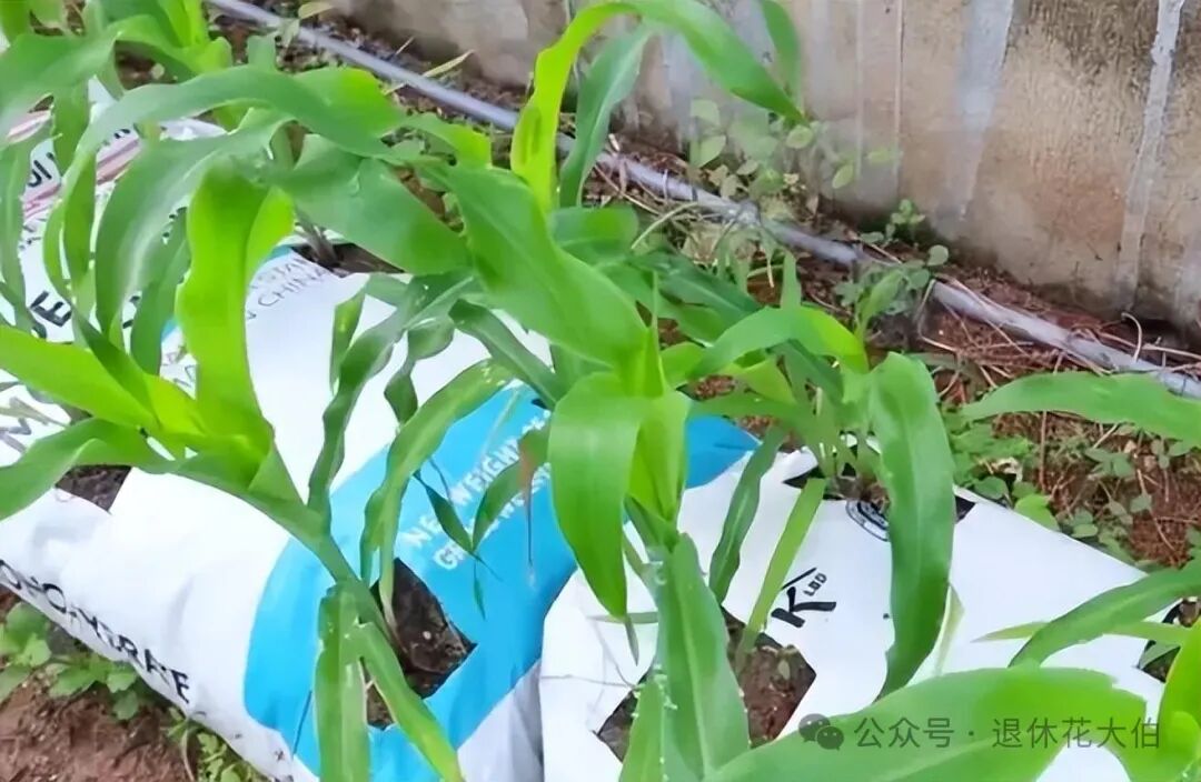 每个编织袋大约可以种植两颗的玉米苗,在种植的期间,我们需要根据玉米苗的生长状况不间断的施肥浇水,确保它们生长过程中所需要的水分和养分能够得到及时的满足。