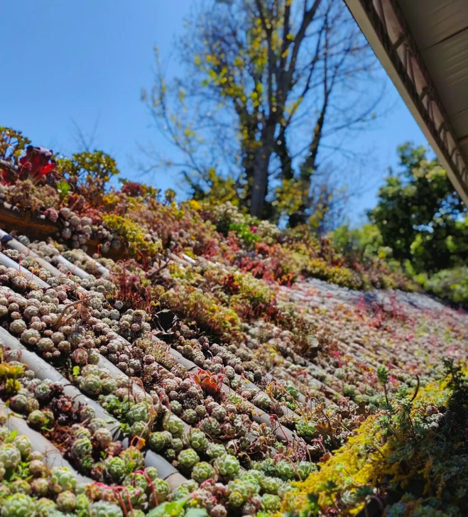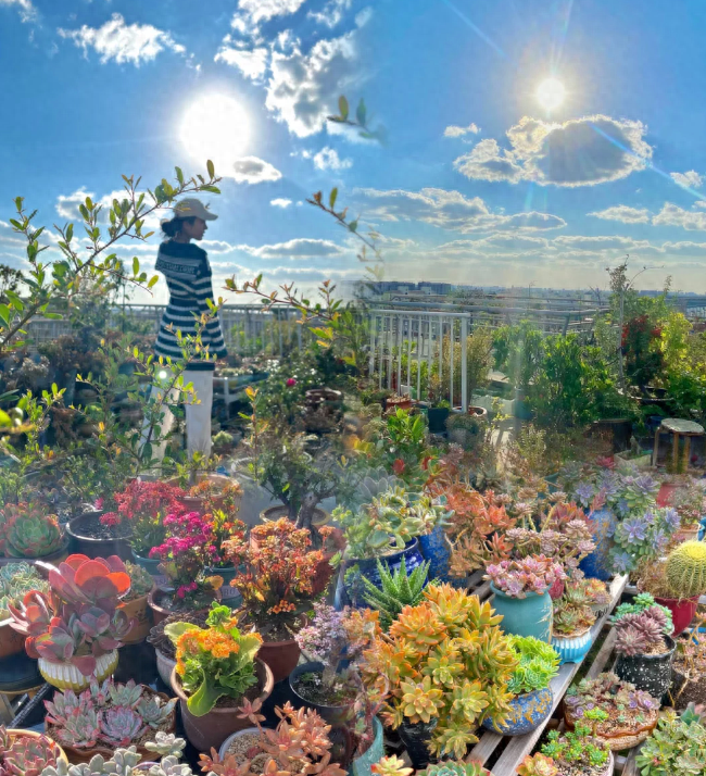 因为她把多肉“种植在屋顶上”,不仅最大限度上展现了多肉的美丽,还提高了空间利用率,锁土固定屋顶,让人带来了一场妥妥的视觉盛宴,超级壮观!