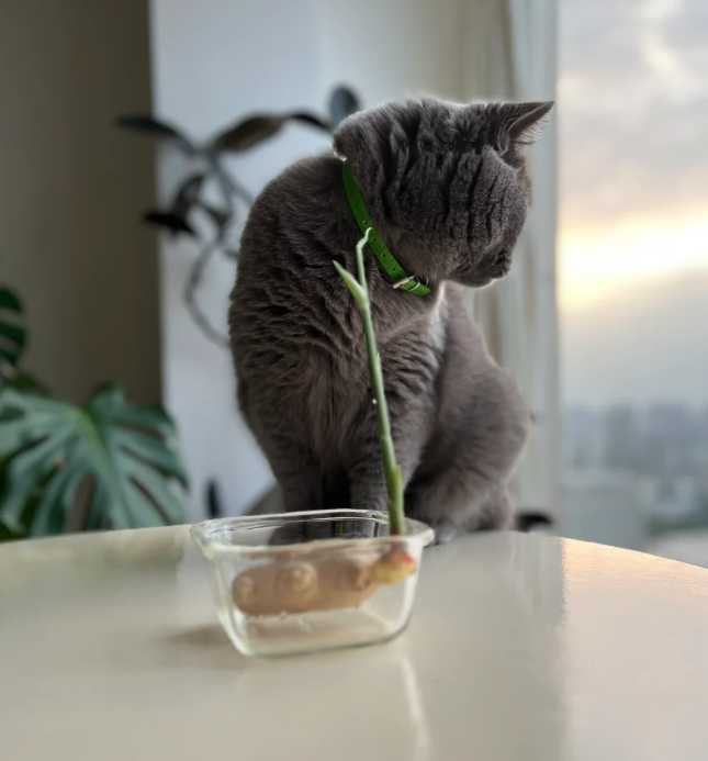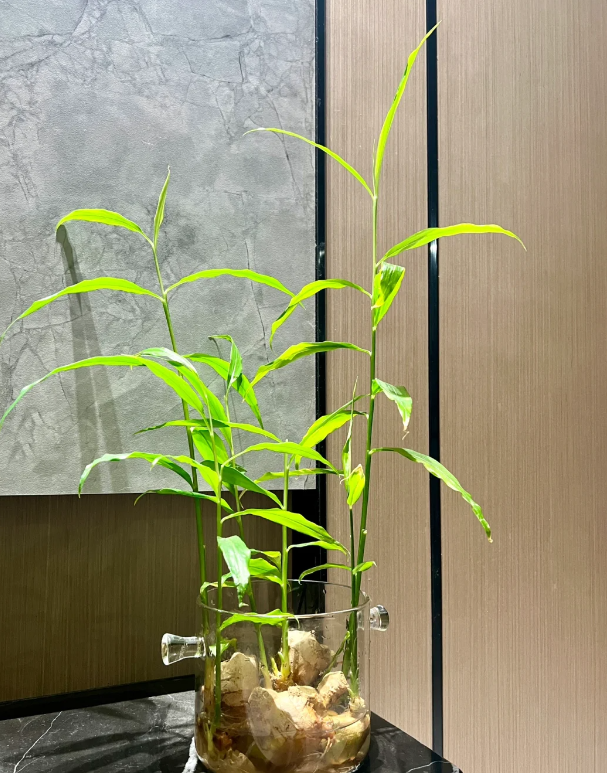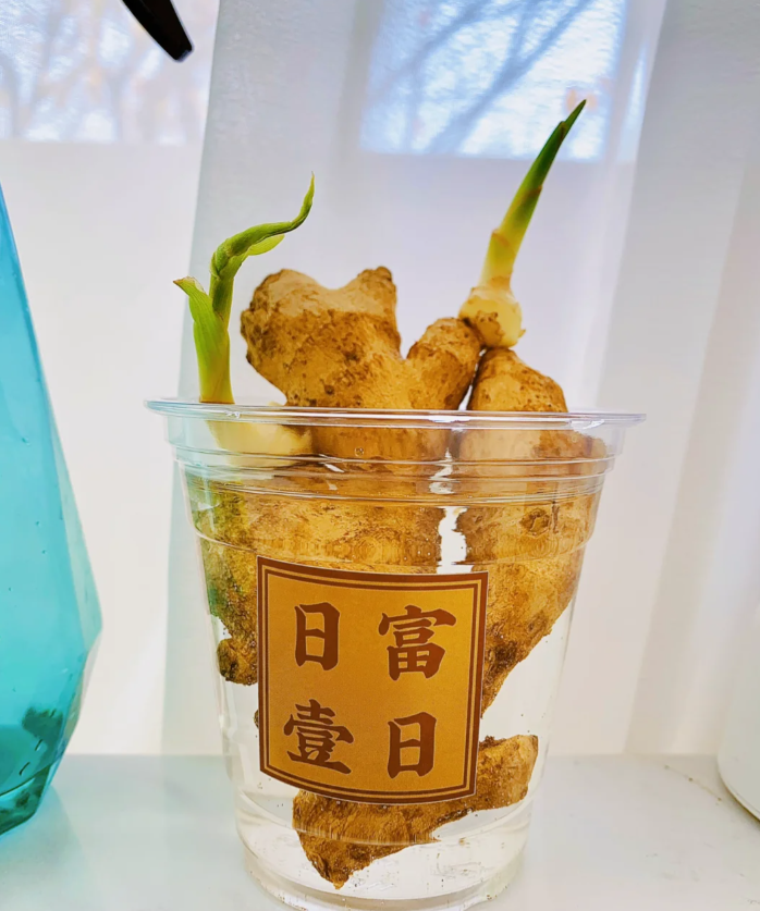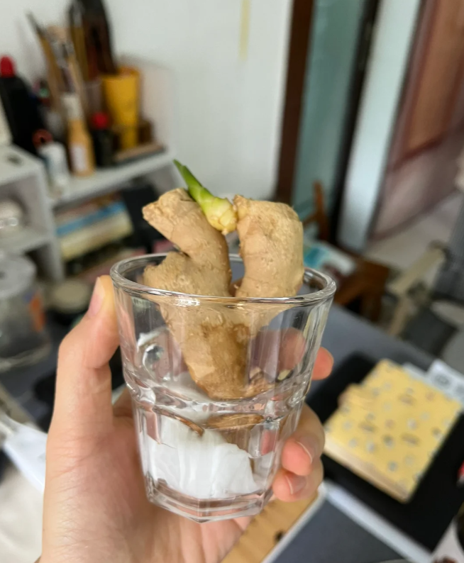不需要用整个生姜,切下发芽的部分水培即可。