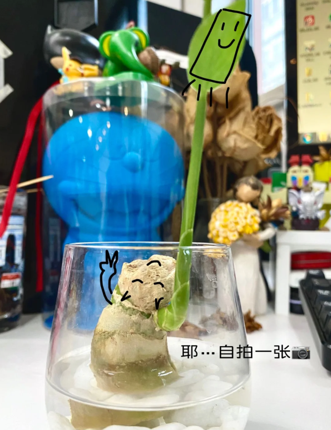 小伙还每天都会记录生姜的变化,在工作的时候,一直有水培的生姜作伴!