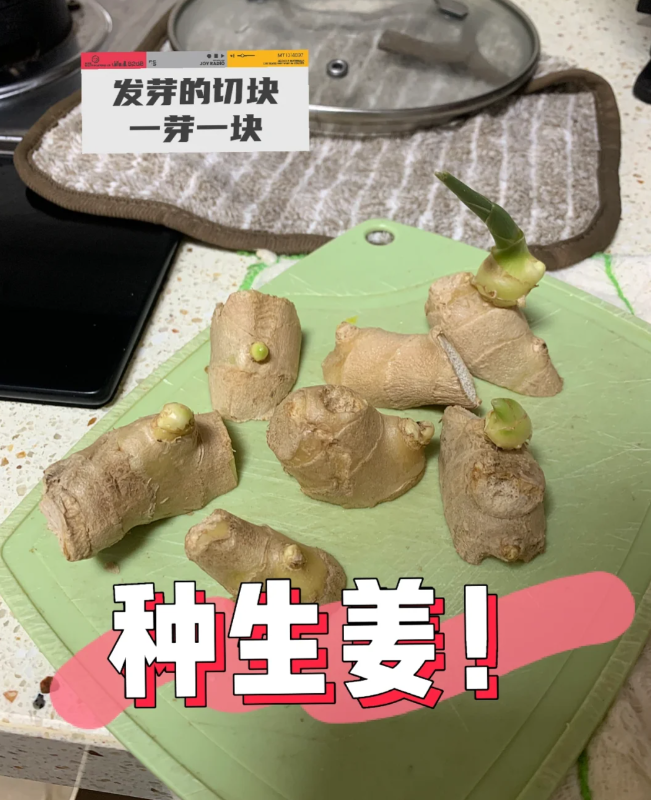 水的 高度至少要淹没切口和根部。当然水多一些也没事,但却不可以淹没生姜上的芽点,不然容易导致腐烂。