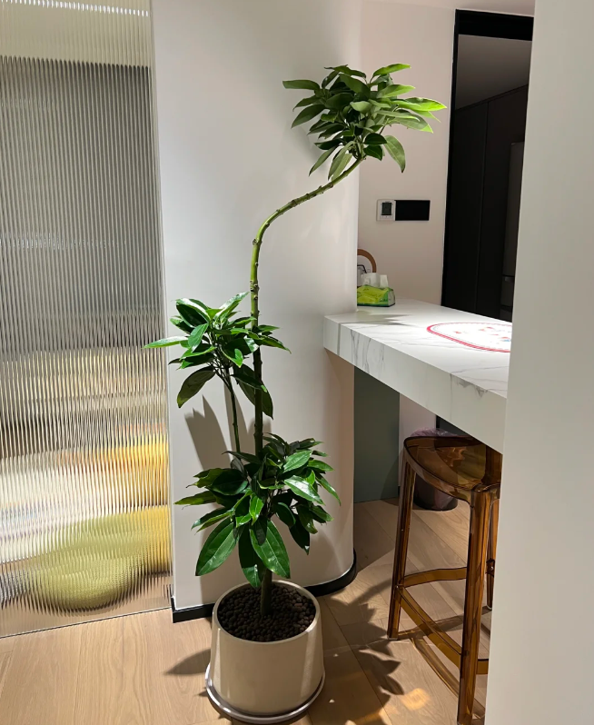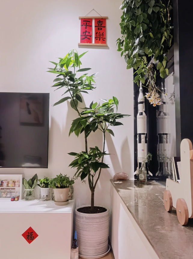 平安树是一种寓意吉祥的植物,它的树形挺拔、叶子翠绿有光泽,不仅能净化空气、调节室内湿度,还能增强我们的免疫力。