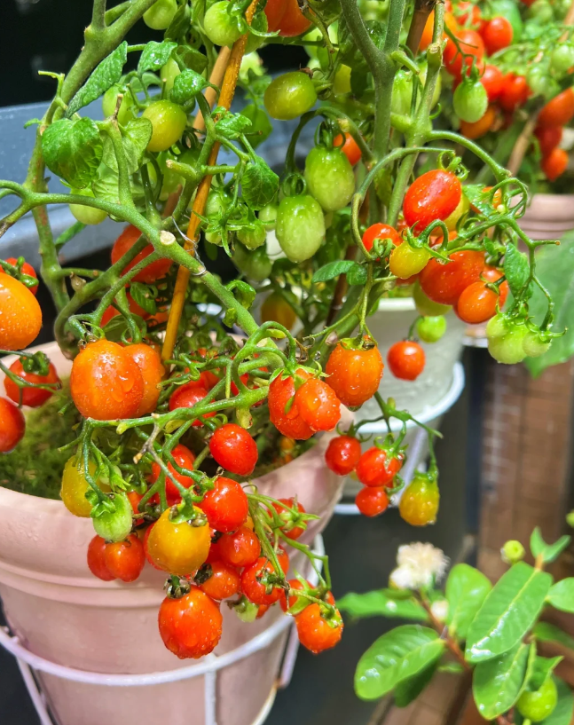 这样阳台盆栽只需要准备一个大一点的花盆以及放在光照充足的地方,两个多月之后就能够收获美味的小番茄了。