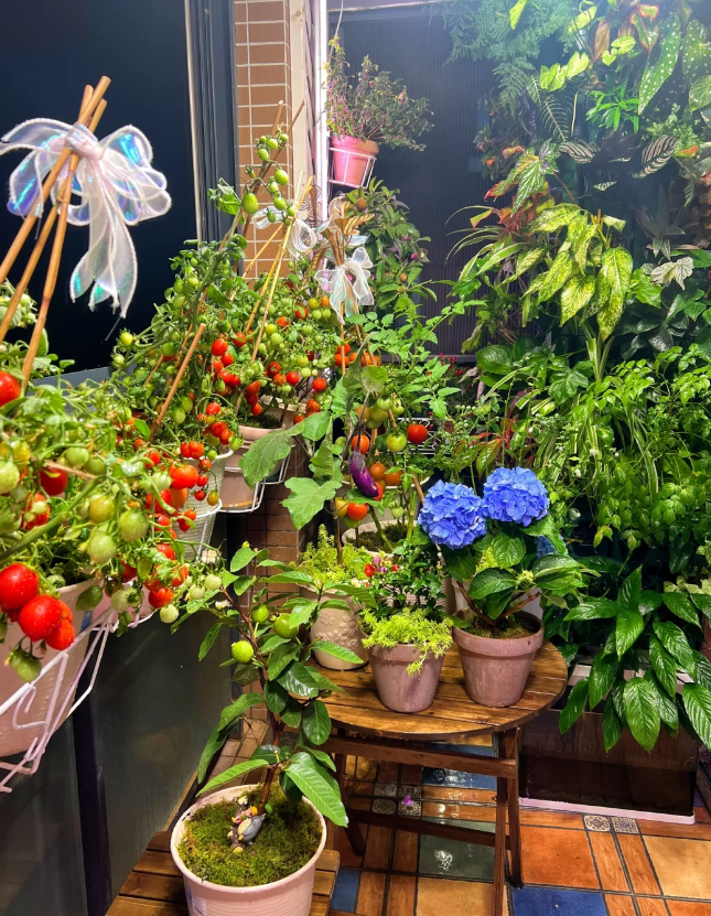 看看这就是她精心打造的阳台,用爱灌溉,一年四季有花有草有果蔬,既是一场视觉盛宴,同时又是一个家庭的丰收。