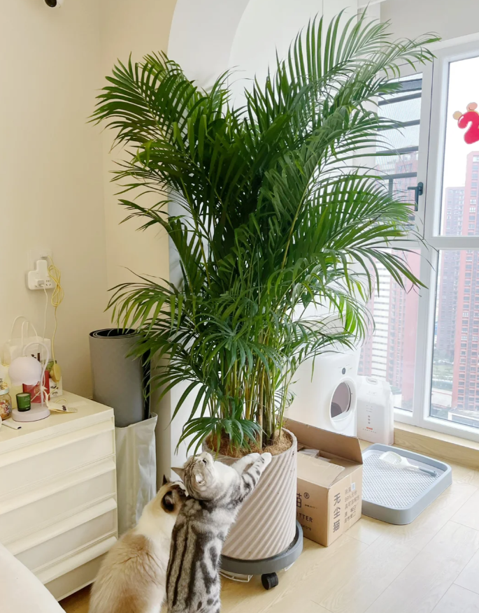 散尾葵,这种原产于热带的植物,在夏天展现出其最佳的生长状态。