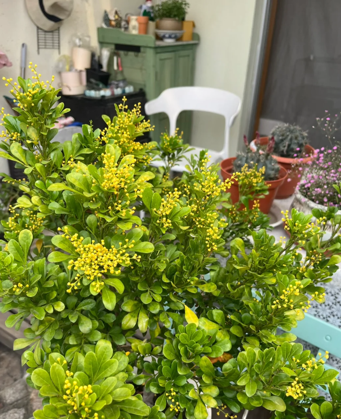 米兰花在夏天是开花的高峰期,那金黄色的花朵仿佛为炎热的夏天带来了一丝清凉。
