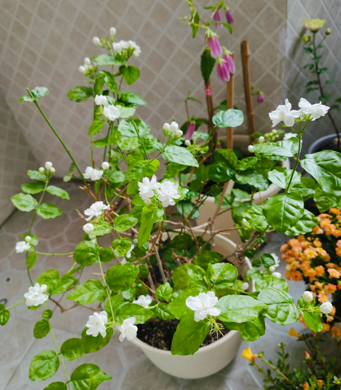 施肥与修剪:茉莉花败后,要及时剪去残花及花柄下的1-2对叶片。为了促进其再次开花,建议使用高磷钾肥料。