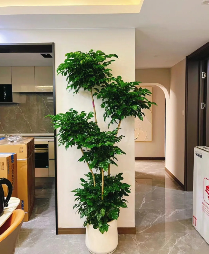 光照与温度:幸福树喜欢明亮的环境,夏天可以放在室外或室内光线好的地方。它不怕阳光直射,但为了防止叶片晒伤,中午的烈日下可以适当遮阴。