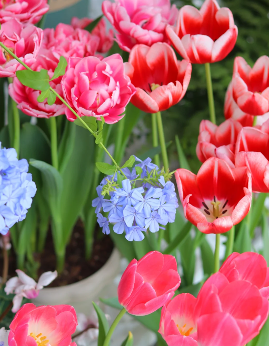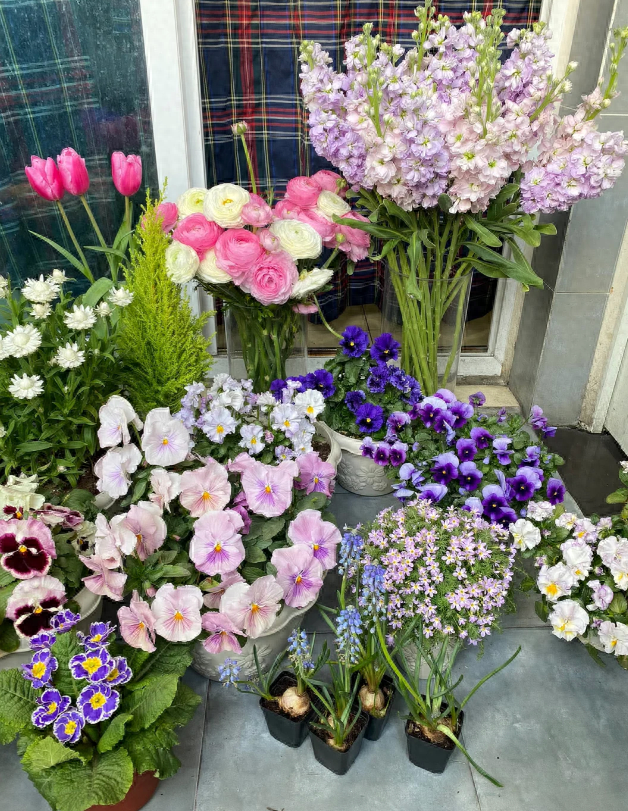 瞧瞧,有蓝色的落跑新娘,有灿烂如朝阳的郁金香,还有象征着纯洁的眼线百合……
