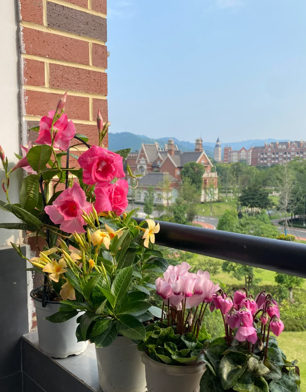每个季节,这个仅仅只有3㎡的阳台都会呈现不同的美景,让人流连忘返,也因此引来了无数同学和老师围观。