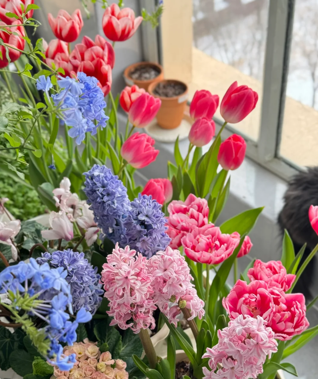 所以大学的这两年他每年都会种植一些郁金香,把不同颜色的郁金香都集中种在一个大大的花盆里,这样花一开就能让人看到春天!