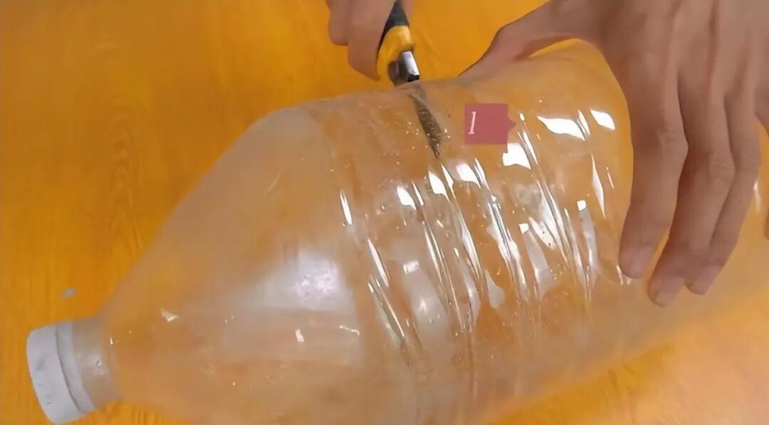我们把大油桶、矿泉水桶洗干净,一分为二,裁剪成上下部分。