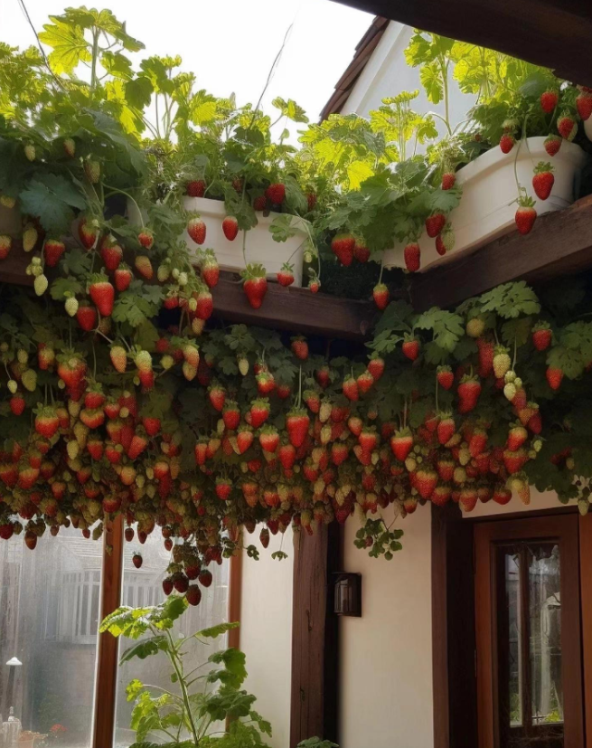 寻常的房子因为有了草莓的点缀变得生机勃勃,充满活力。