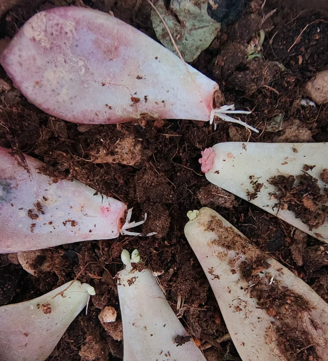 1. 可采用叶片或枝条扦插,取下后晾晒伤口至干燥。