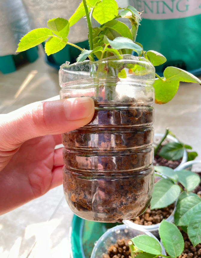 3. 选择小花盆,扦插后浇透水并放置在散射光下,很快即可生根发芽。