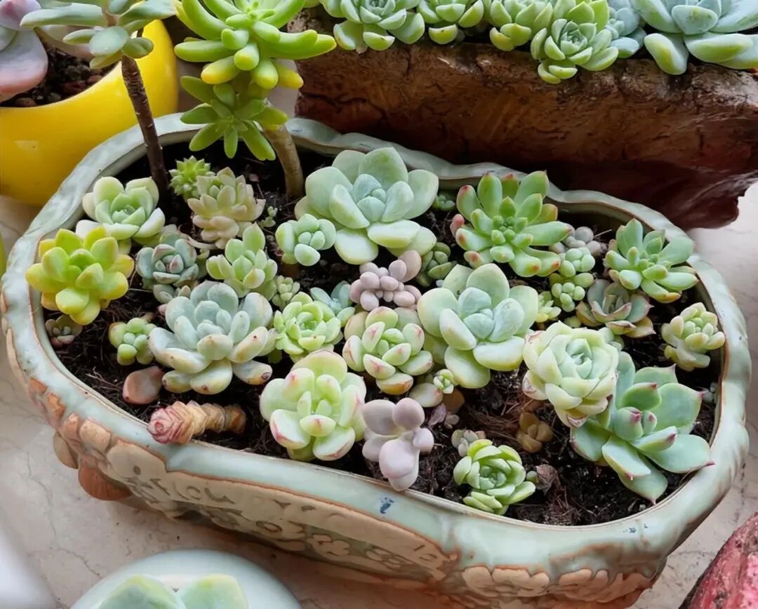 这位姑娘之所以能够走红,一方面是因为养殖出的多肉状态好,另外一方面则是因为选择的花盆不一般。