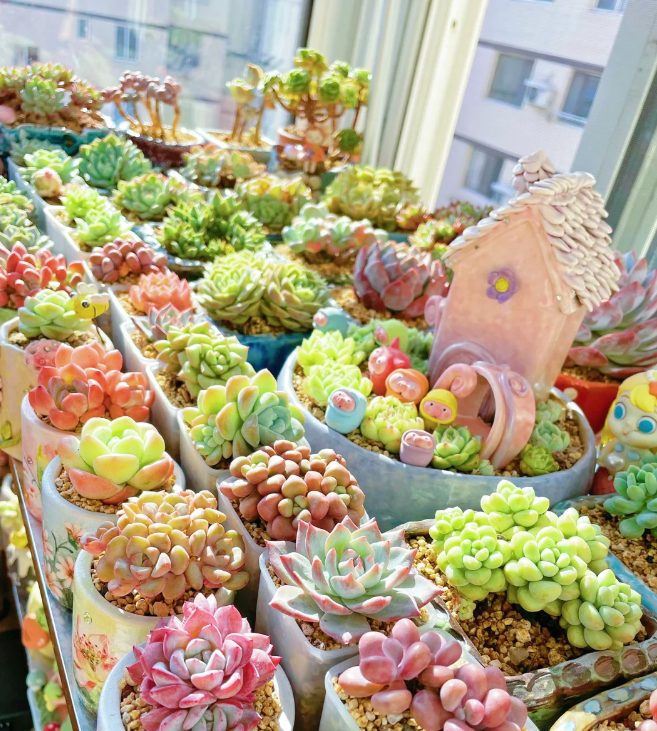 她在阳台的不同地方放置了不同的娃娃多肉盆景,每一个都是精心雕琢,刻意引导,惟妙惟肖,栩栩如生,让人一见难忘!