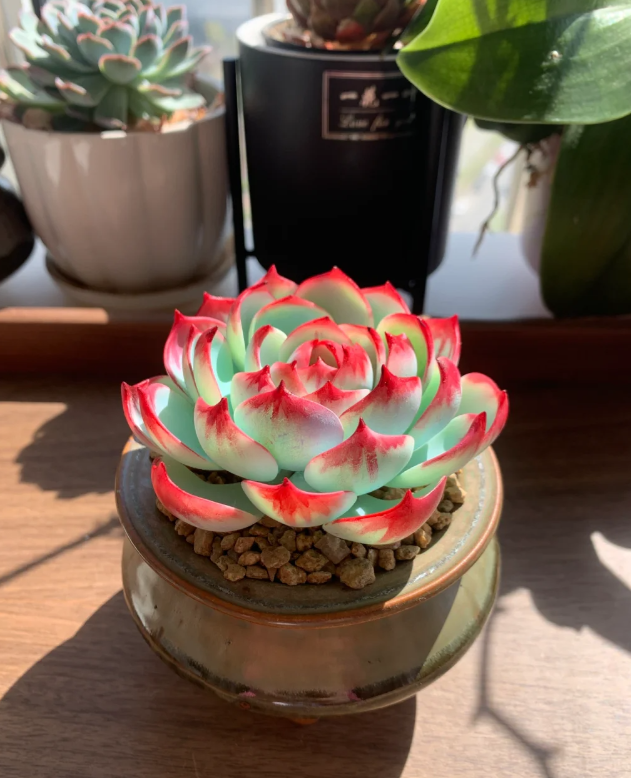 莲花科属的多肉植物生长的过程中需要适当的引导才能够长得对称,长得美。所以如果没有一点基础的话,最开始练手就不要选择这类的多肉植物了。