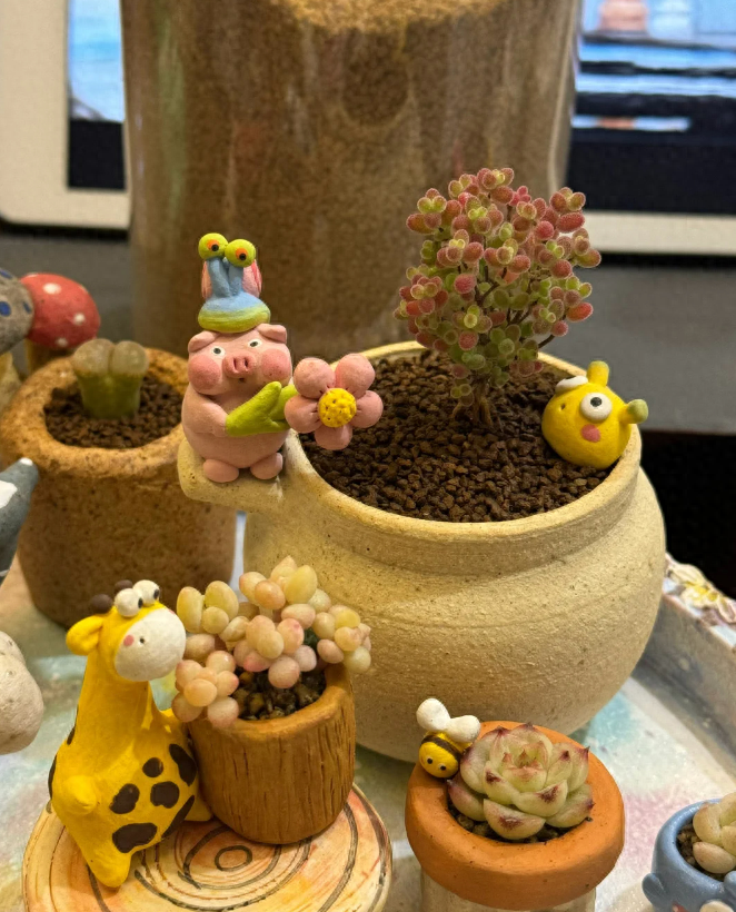 每个花盆都是一个独立的娃娃,和多肉植物相得益彰,相辅相成才成就了如梦似幻的多肉娃娃盆景!