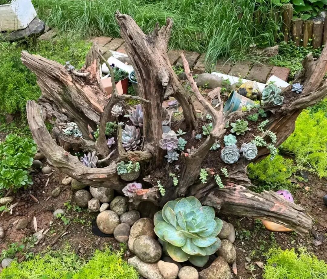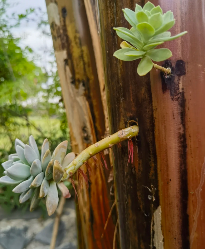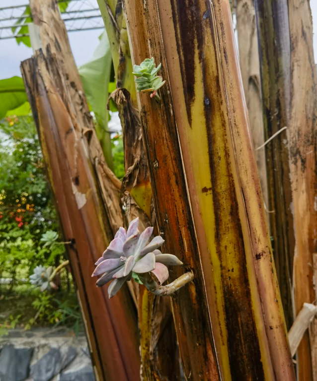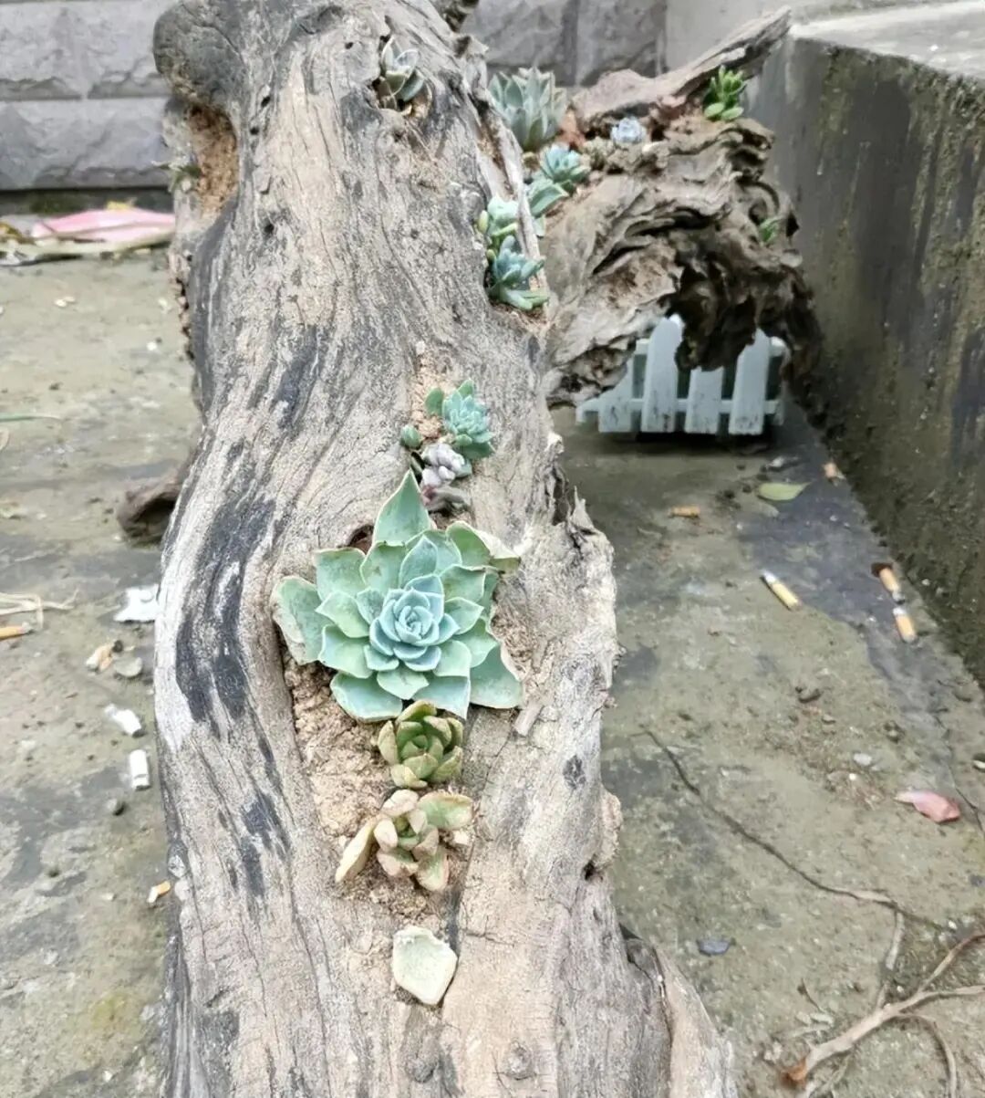因为她直接把多肉种植在了生长中的大树上,结果不仅多肉没死,大树没有受到影响,反而两者结合在一起,造型更加独特好看,长势也更好了!