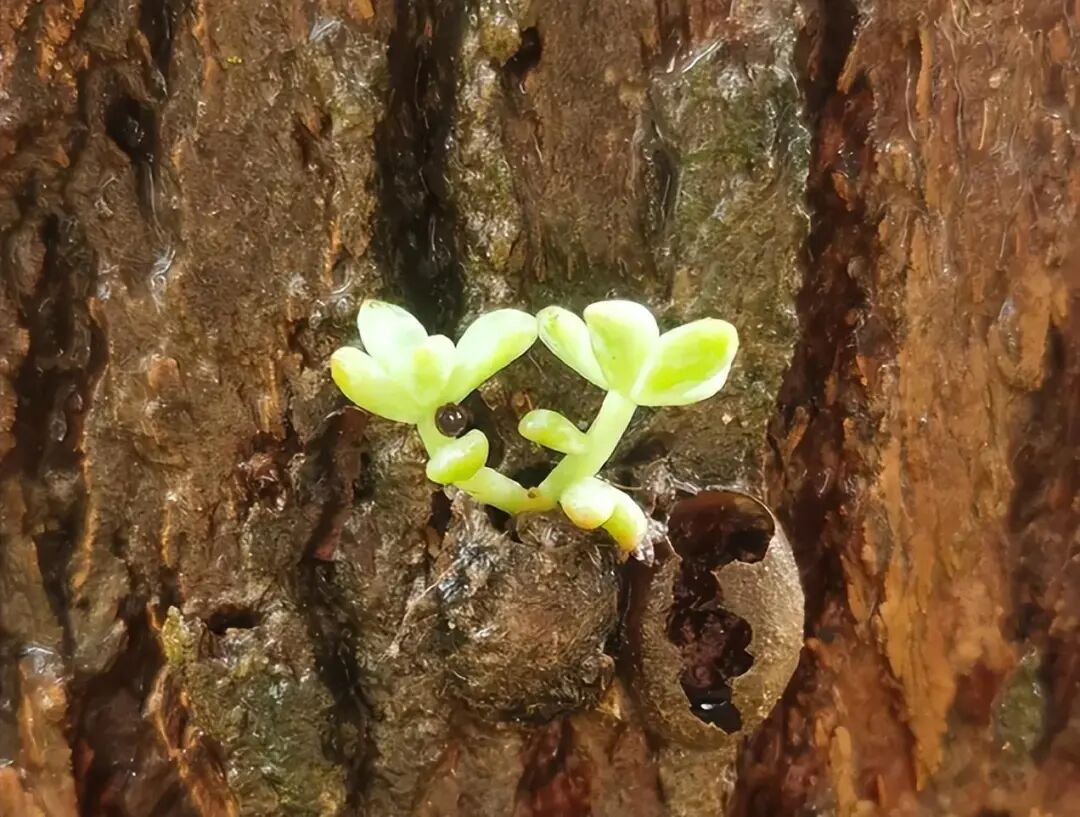 大自然中的多肉植物可以生长在贫瘠的石头缝隙中,所以生长在树上也不是啥问题。