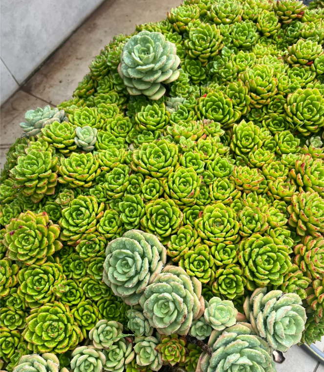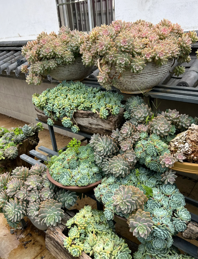 多肉植物适应性很强,种植在肥沃的土壤中,再加上四季温暖如春的气候环境,我们即使一直不管理,多肉都能长成大白菜样。