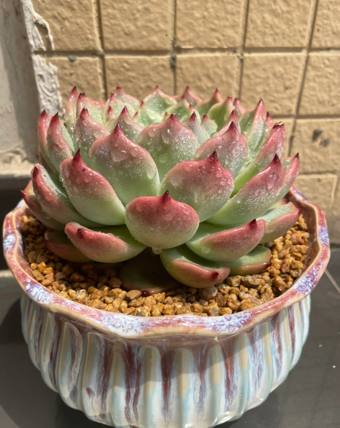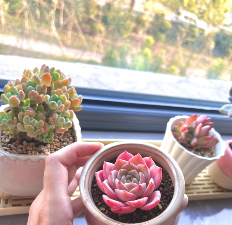 由于多浆科属植物的叶片可以储存大量的水分,而根部多瘦弱,所以在种植这类植物的期间,我们要管住手,少浇水!