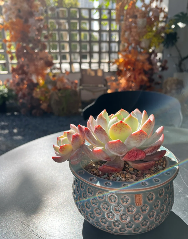 多浆科属植物多喜阳光,光照越充足,长势越喜人!所以在环境条件允许的情况下,要一直把它放在光照充沛的地方,即使是炎热的夏季也要一直沐浴在太阳直射之下,这样光照越充足,其状态越好。