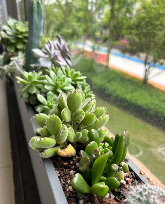 它属于多浆科属植物,是一种非常好养护的植物,即使不怎么管理,露天安置在室外,春秋时节照样会嗖嗖的疯长!