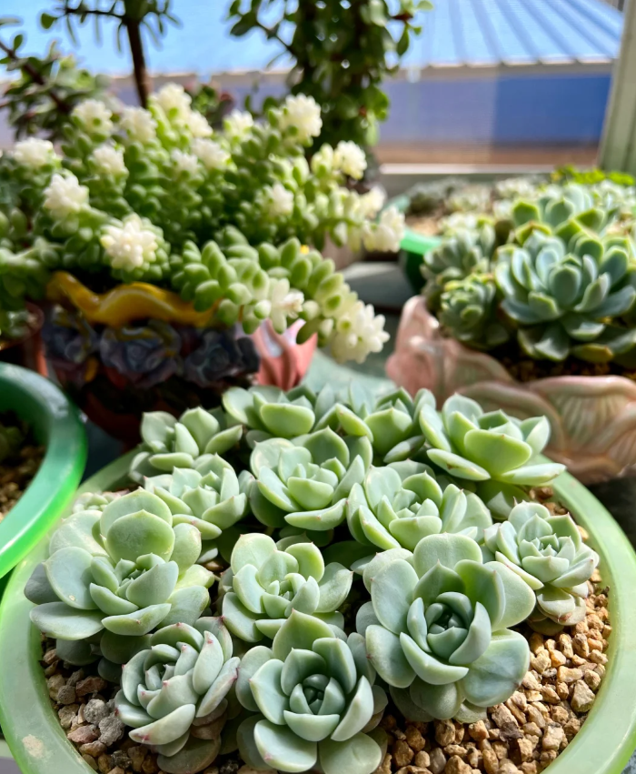 然而在小姐姐的手中,不管是哪个品种的多肉植物都得到了精心的照料,都越长越美,越长越旺盛,宛若童话里的“巨树”,又美又飒。