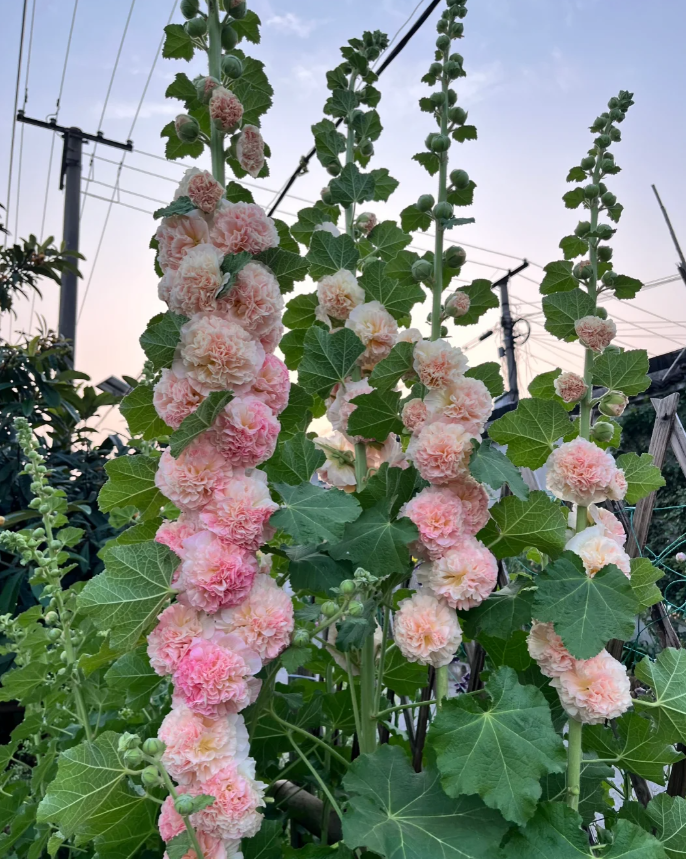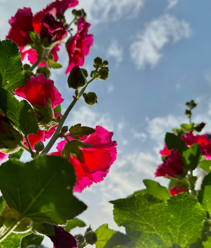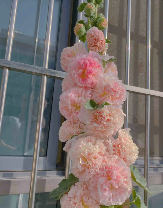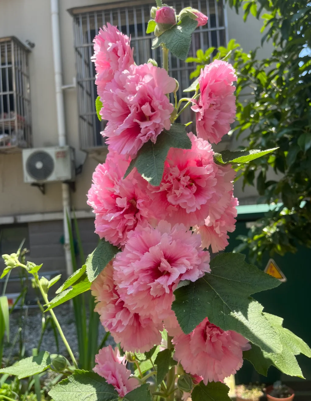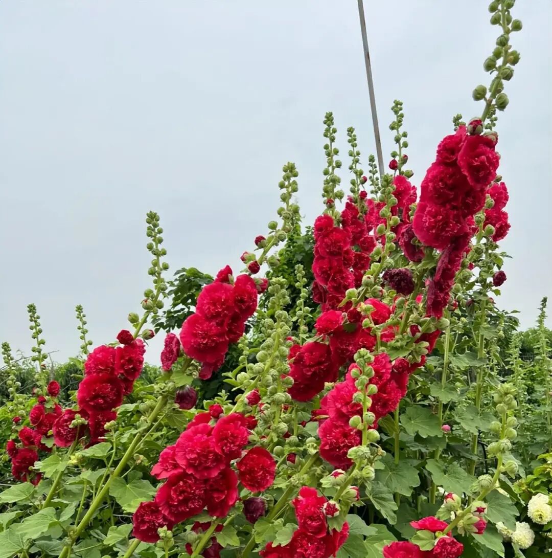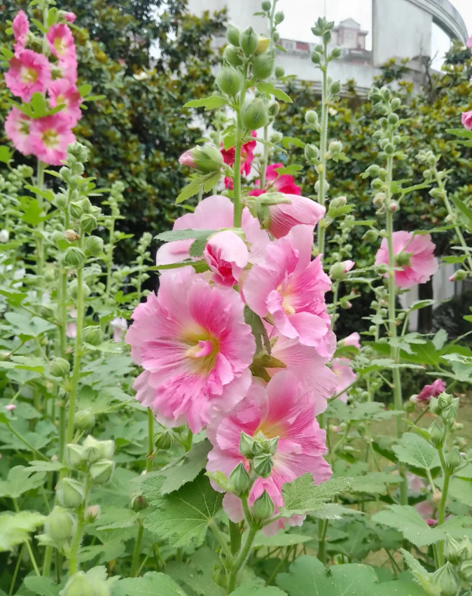 蜀葵的植株高大而直立,轻松就能长到一两米高,成为庭院中的一道亮丽风景线。