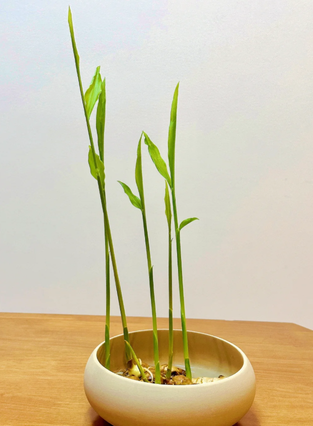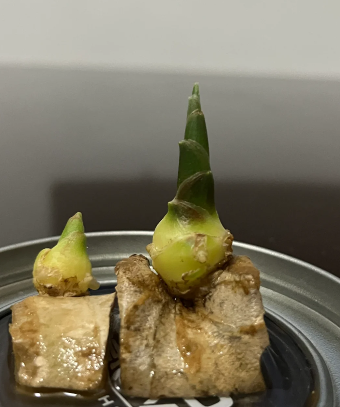 一直把发芽的生姜放在干净的自来水,按照上面的环境要求放在适合的环境中,这样基本上不需要做任何的处理,发芽的生姜就会一天天的长成独立的幼苗开花结果!
