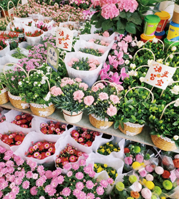 端午节的花市,繁花似锦,香气四溢,总是能吸引大批爱花人士。