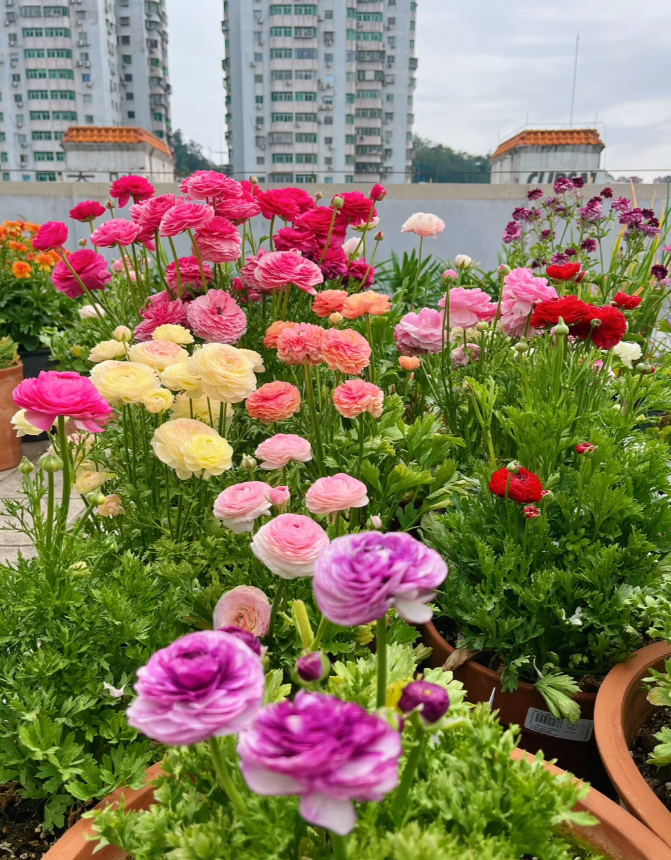 花毛茛,这种喜欢凉爽环境的花卉,在高山或寒冷地区生长得尤为茂盛。