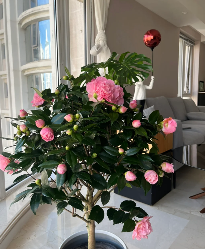 养护茶花时需将其放置在半阴半晒的环境中,既保证光照又避免暴晒,同时保持土壤湿润。