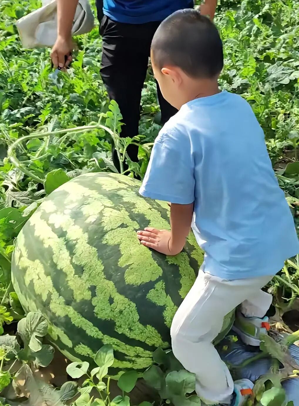 原来我们熟悉的水果西瓜居然还有如此大的潜力,看看,这就是张女士晒出的小孩子和西瓜的合影!