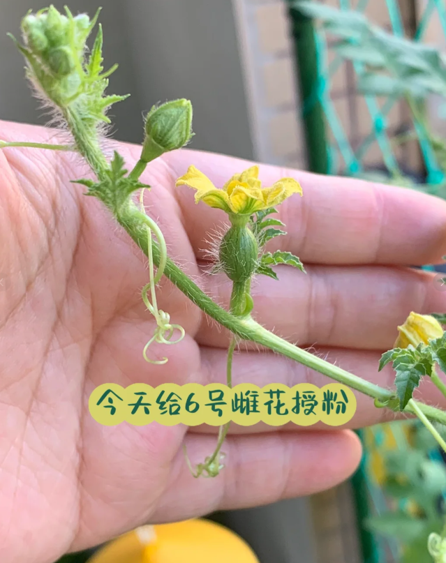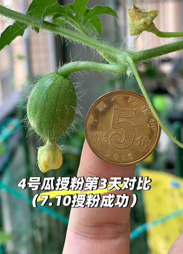 我们要趁着早晨天气凉爽的时候,用棉签等来收集雄蕊上面的花粉,然后再把花粉轻轻的涂抹在同株或异株的雌蕊上,这样等一两天看看有没有授粉成功,如果没有授粉成功,顺利的长出小西瓜,我们就把这个过程再重复做一次!