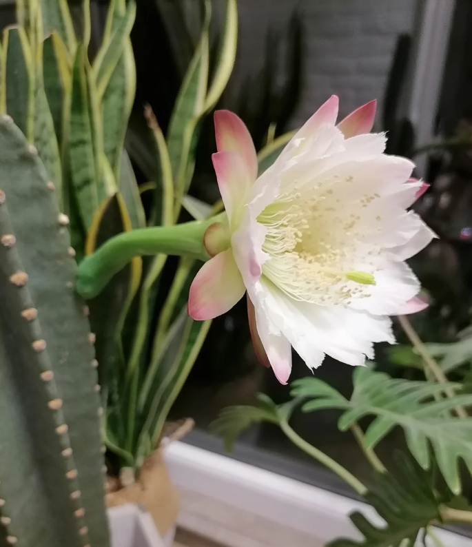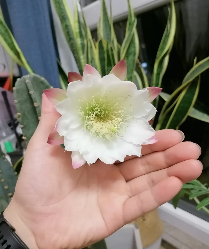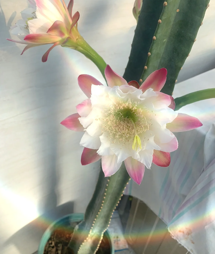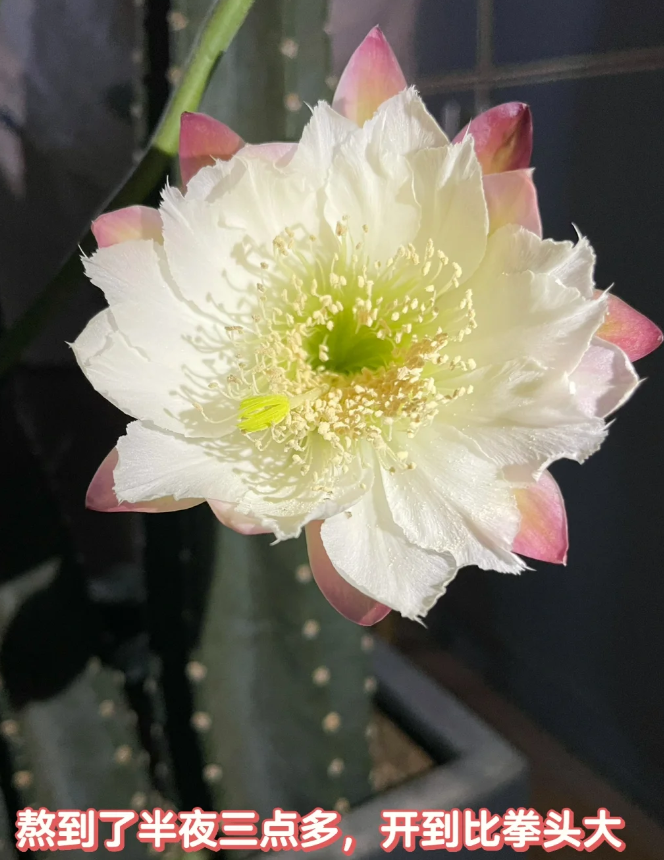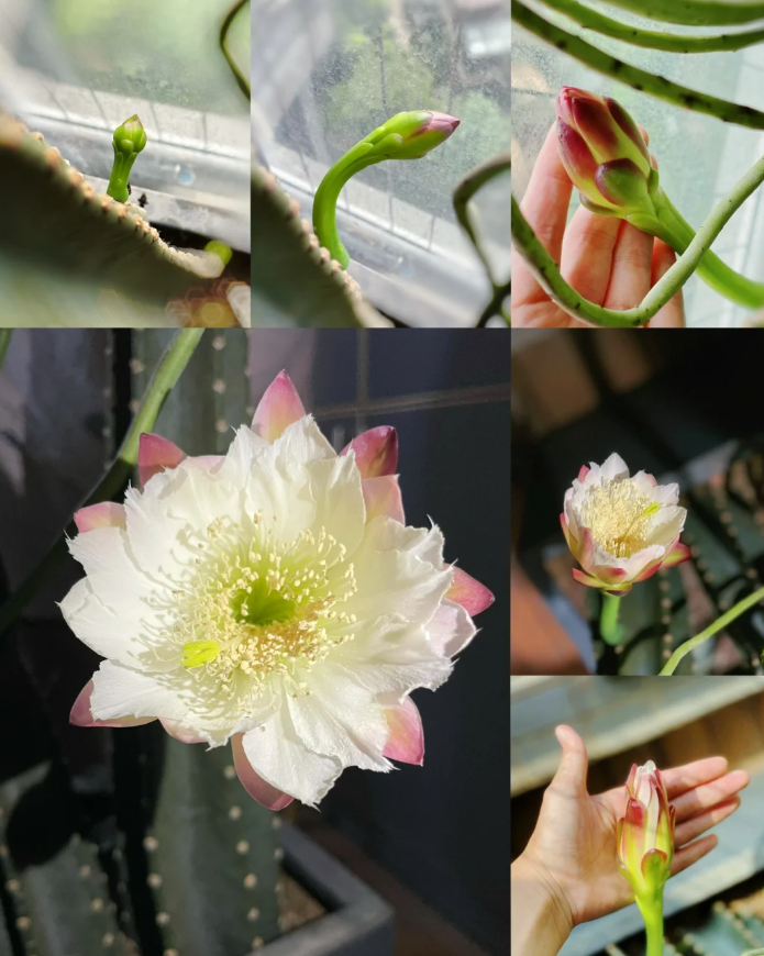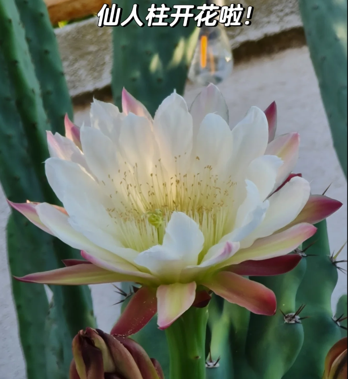 然而令人没想到的是当老人没有条件继续养殖下去,迫不得已想要把它送人的时候,这盆仙人柱居然开花了!
