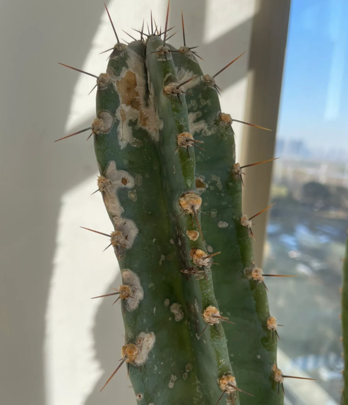 在人为补光的期间时不时得绕着仙人柱360度旋转,这样可以让仙人柱更均衡的生长,避免其受到“趋光”特性的影响出现倒伏长歪的现象。