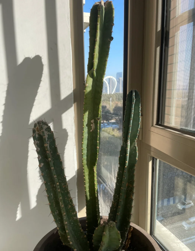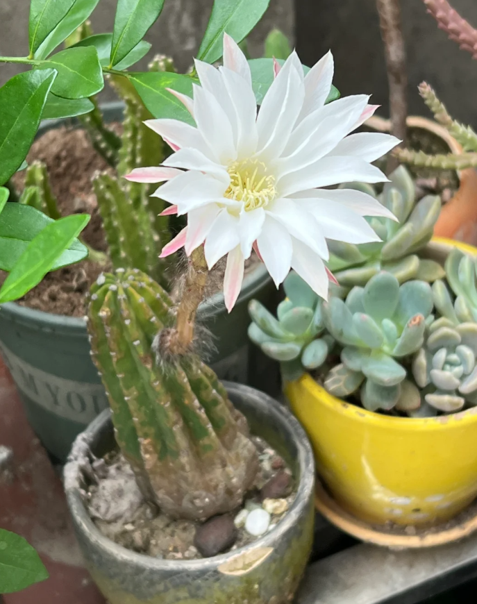 这样一盆看似普普通通的仙人柱,养了40多年,一直就是一个绿意盎然的样子,和常年不开花的仙人掌几乎没有什么区别,唯一的可能就是样子不同吧。