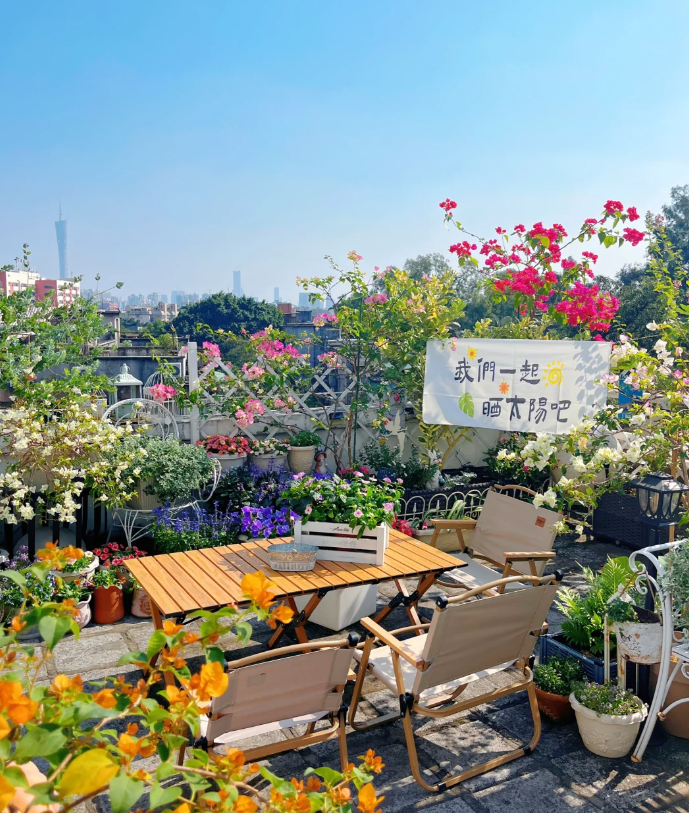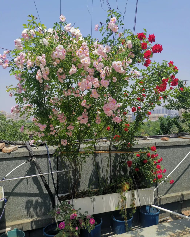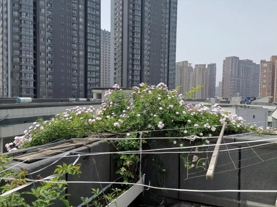 比如这位在网上匿名分享出自己在楼顶养花的美照的网友,