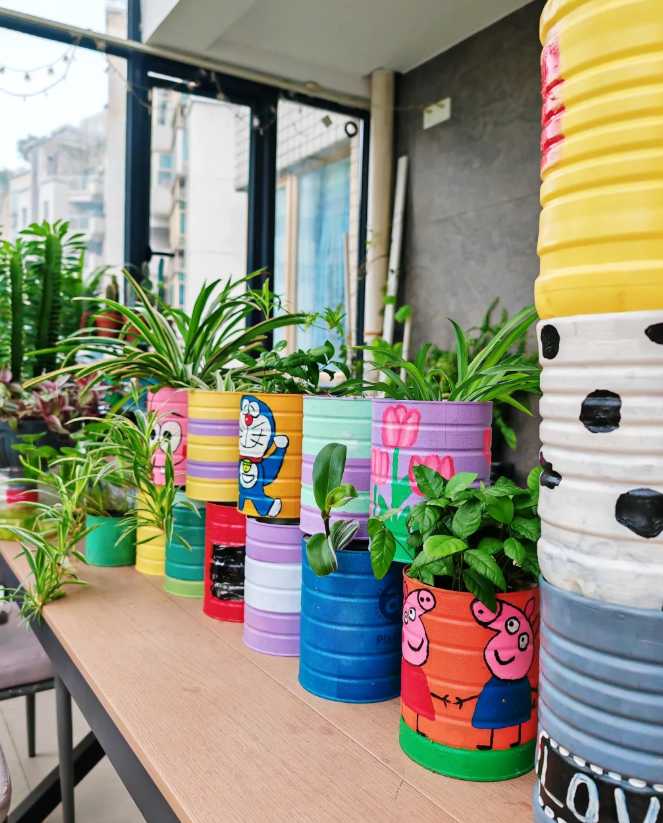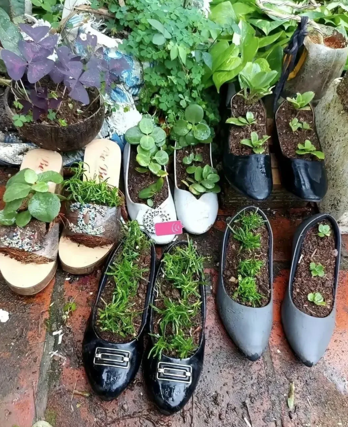 其实我们想要得到容器的途径非常多,可以是保温箱,也可以是改造后的矿泉水桶、油桶……,甚至是不想穿的旧衣服、旧鞋子、家具等,通通都可以作为容器填充土壤,种植花草或果蔬。