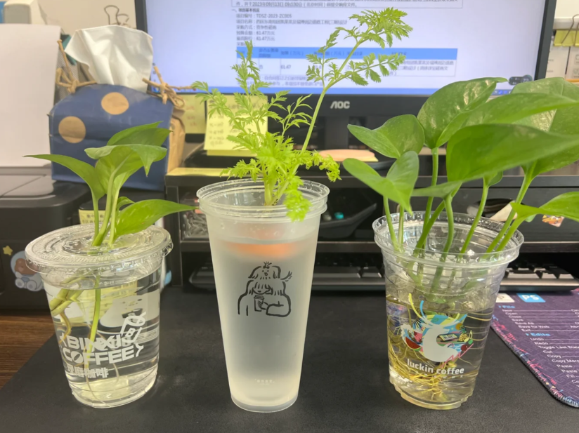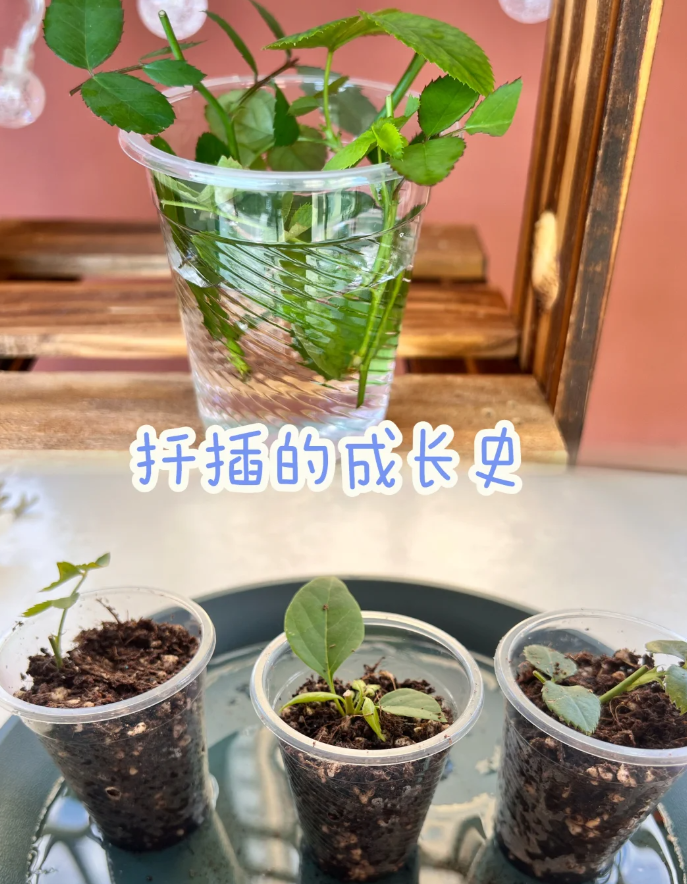 比如月季,这种植物经常出现在绿化带中,我们只要有条件获取枝干,然后就可以把它放在水里育苗,像现在温度已经持续高于25℃了,我们通过水培育苗,枝干基本上3-7天就会长出大白根。