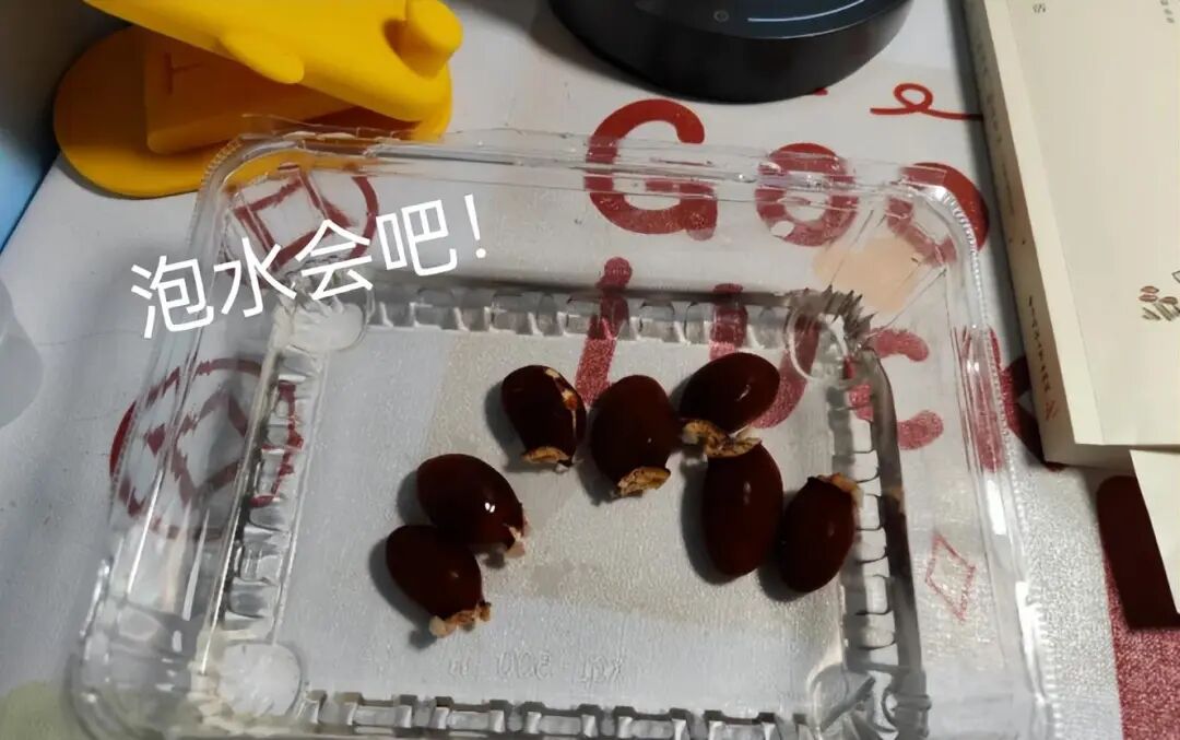 浸泡荔枝核:将清洗干净的荔枝核放入小碗中,加入足够的清水浸泡。注意水要适中,刚好淹没荔枝核即可。