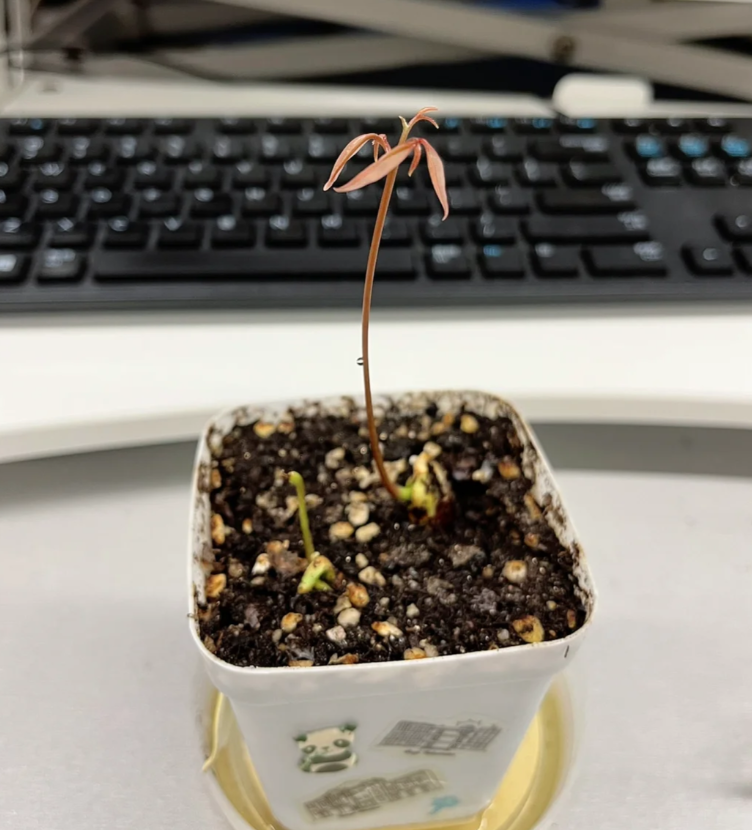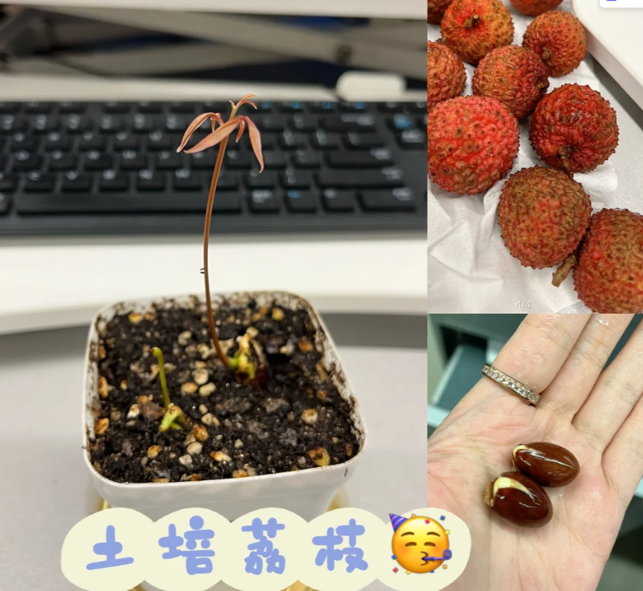 经过精心的栽种和养护,大约7到10天后,你会惊喜地发现花盆里开始冒出细长的荔枝嫩芽。