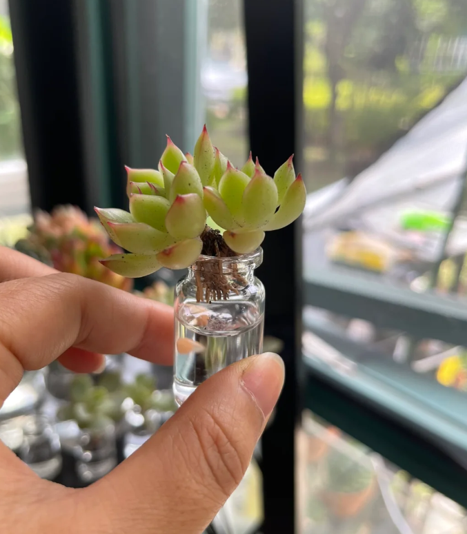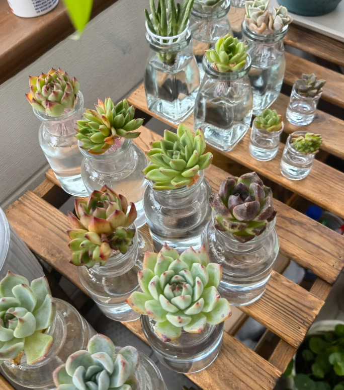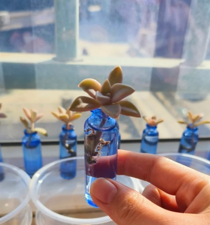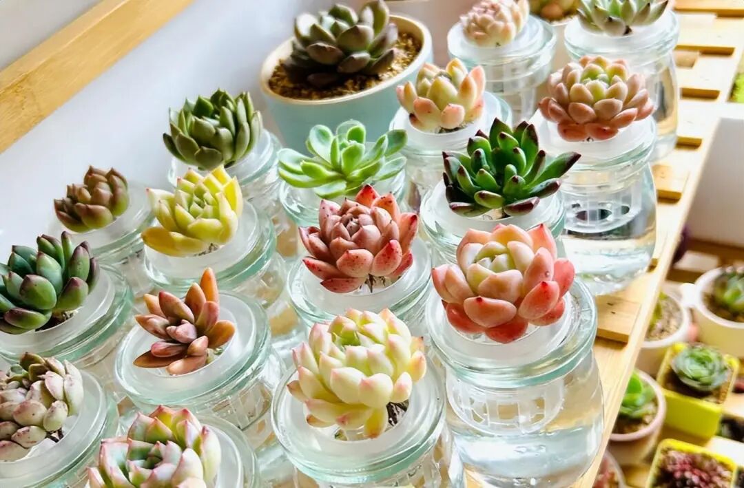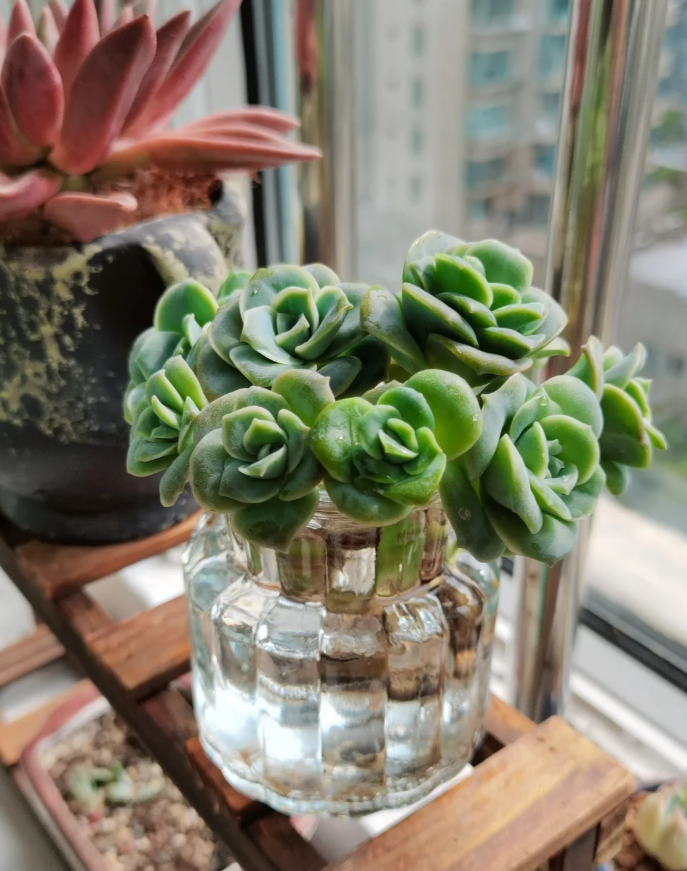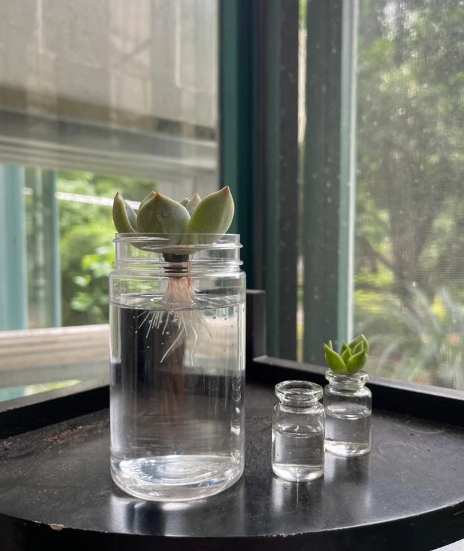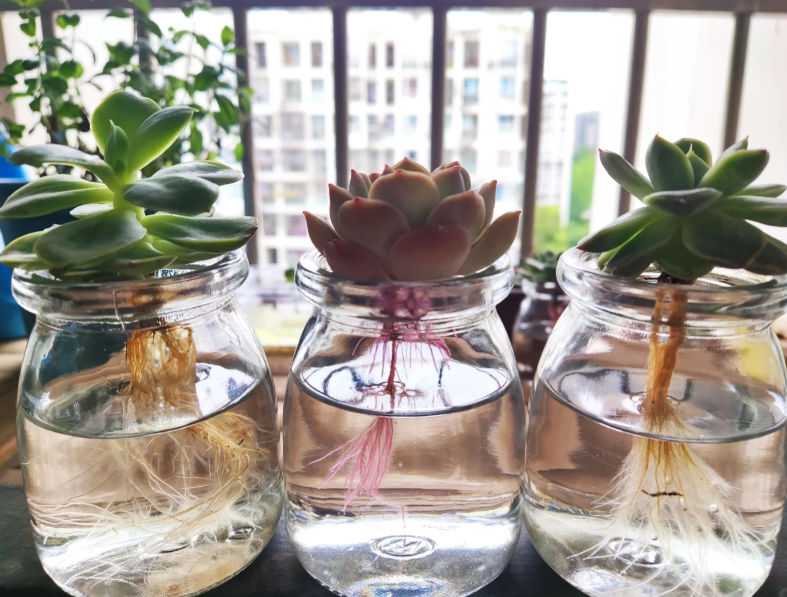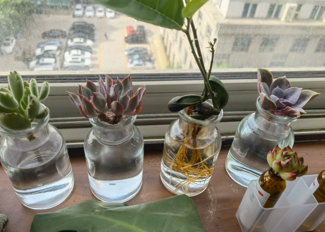 所以面对在炎炎夏日中瑟瑟发抖的多肉,我们不妨耐心一些,像小姐姐这样换成水培降低打理的难度,或根据多肉的喜好打造一个专门的环境培育多肉。