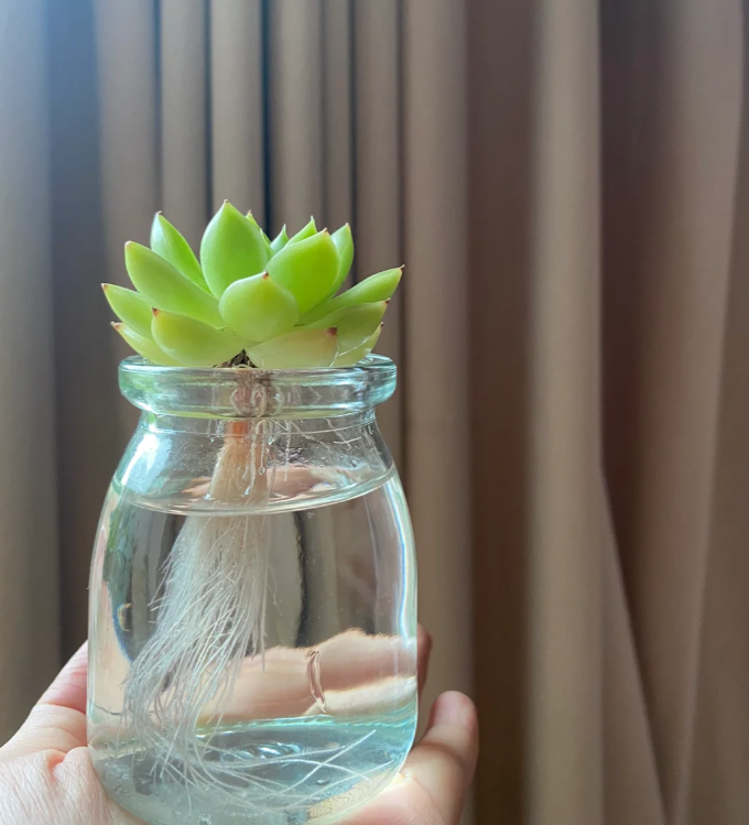 不妨学她这样趁早把土培的多肉更换成水培,