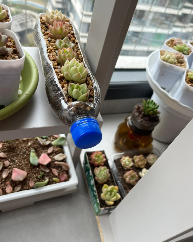 但为了降低成本以及方便固定小巧玲珑的多肉植物,我们可以先在家里找一找,比如有没有罐头瓶子、啤酒瓶子、化妆品瓶瓶罐罐……
